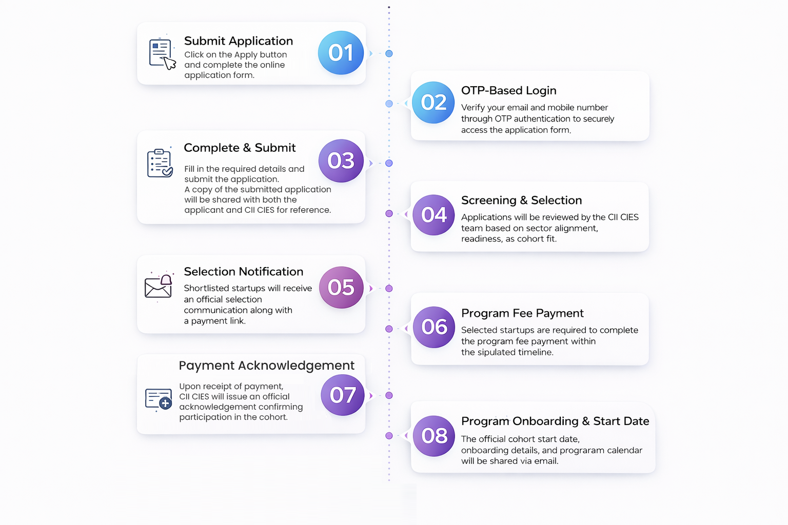 The official cohort start date will be communicated to all selected startups in advance, independent of individual payment dates.